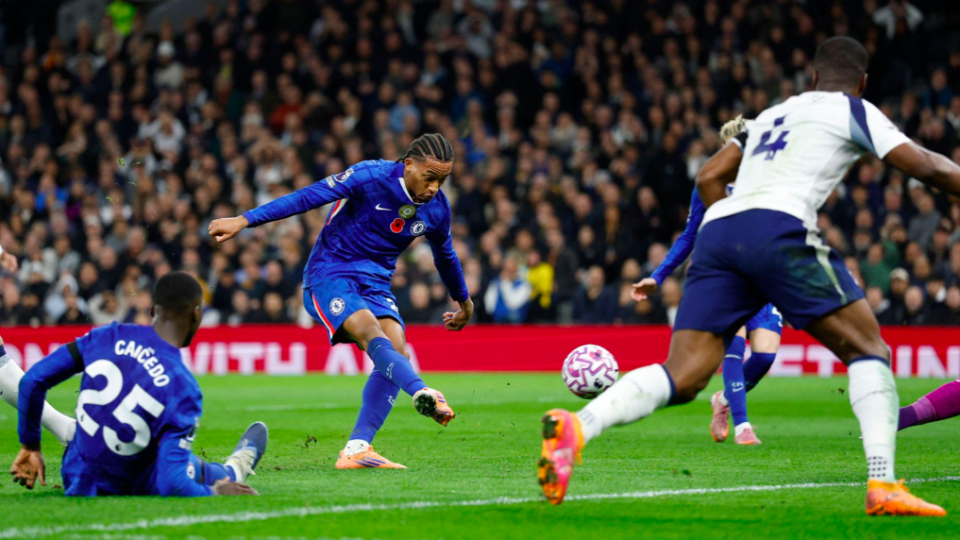 第43分钟,切尔西差点扩大领先优势,古斯托下底传中,佩德罗包抄射门,维卡里奥腾空而起,将球托出横梁。